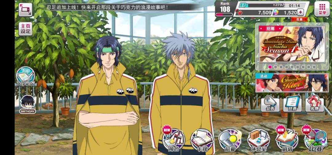 推荐:幸村精市的“梦的延续2”,迹部景吾的“沉醉在本大爷的美技中吧”,菊丸英二的“化作翅膀”(西风+),德川的“survival destiny”(西风+),龙雅的“orange”(西风+)进行练习
