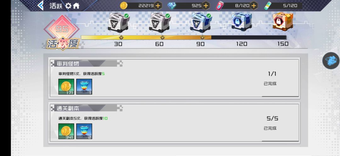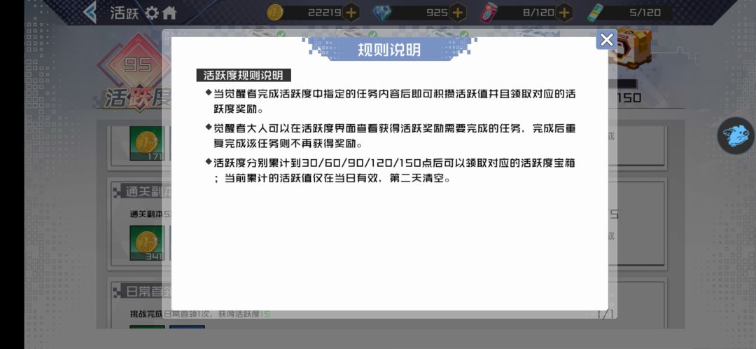 今日将所有任务做完,但活跃度却没有满150,第二天要清零,是我有什么遗漏之处吗