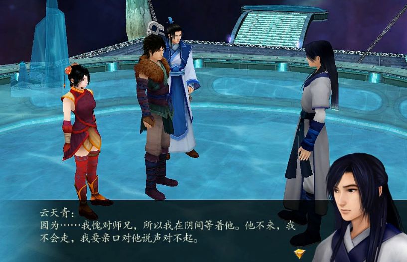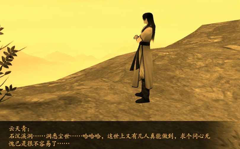在仙剑4单机版中,青爹第一次出现源自云天青在石沉溪洞中的回忆。云天青站在青鸾峰边若有所思的望着远处,自言自语的说着什么,言语间透露出的,是洞悉尘世的气概。