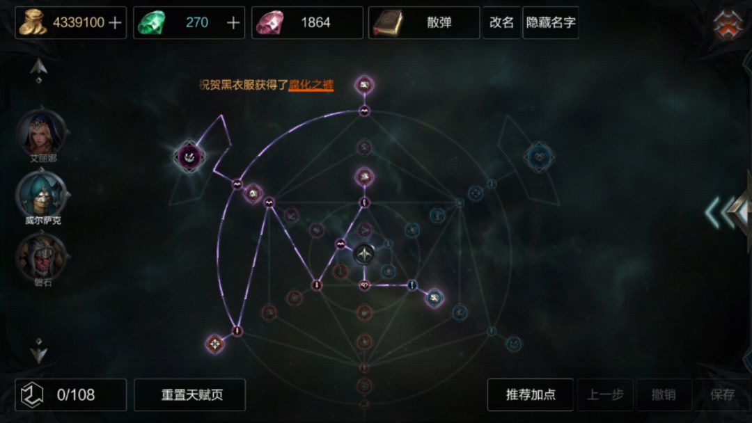 理论上呢,疾影 嗜血是保命最强的,但是实战中手感真的差劲,因为是直接往英雄面朝方向闪现的,还得停下来才能调整方向,而手感最强的是这个白色技能,玩起来很滑溜,跑的又快,只要不跑到角落被卡住,万物皆可风筝(碰到有强控的,一但被控制,马上换英雄,因为这套的保命能力没有纯吸血的硬)