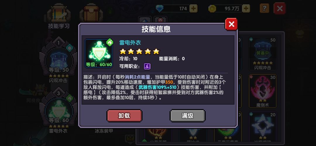 堆生存不二之选,拥有防御、伤害、状态集一体的被动技能,被动受伤可以触发一次雷电效果中间无cd间隔,法师清兵神技,可以利用关卡的环绕火珠、岩浆快速触发清怪配合冰帽群体aoe,闪现踩脸艺术就是抱榨。被动触发可以叠加感电,十层20%减伤也是生存能力的一部分,高额连击可以配合感电20%额外伤害堪比小撕裂。唯一不足的是有bug不能被流血和恶魔披风触发。因为我玩过战士知道低语武器条件受伤触发,雷电外衣也是受伤触发,但前者可以被流血触发叠加冷静,后者没有。我已经反映了五遍以上了,不知道国庆会不会修复。
