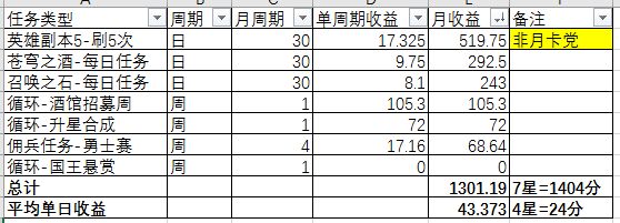 非月卡党不算友情之心,月固定收益1301.19分,不到1个7星