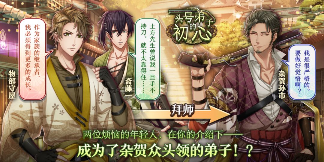 4、「上限解放」及「男子觉醒」不会影响男子加成效果。若编队中有两位及以上加成效果的男子,加成效果会进行叠加。如【装束:头号弟子的初心】的杂贺孙市和物部守屋同时在编队中的活动关卡加成为:50%UP+20%UP =70%UP!