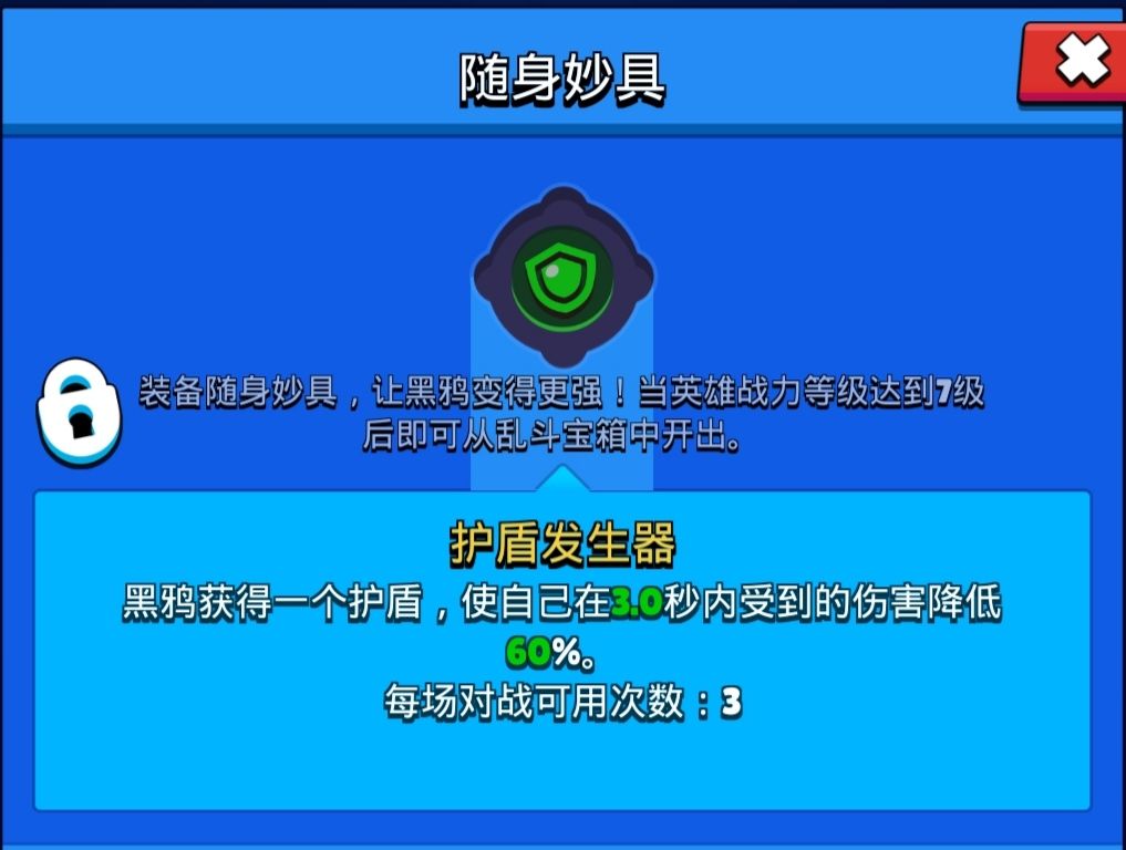 乌鸦:T1,减伤60%持续三秒,仿佛是罗莎的大招,近战利器,让原本脆皮的乌鸦可以单挑更多角色,跳大之前开护盾也能更大概率击杀敌人。本来就孤儿的乌鸦,配上妙具,emmmm~