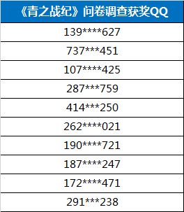 《青之战纪》首测调查问卷获奖名单