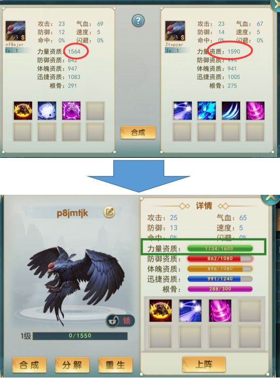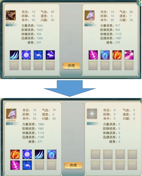 关于合成还有一个重要的点是需要玩家先考虑清楚的,也就是你需要的是多技能的宠物还是高资质的宠物,这决定了你合成的策略。