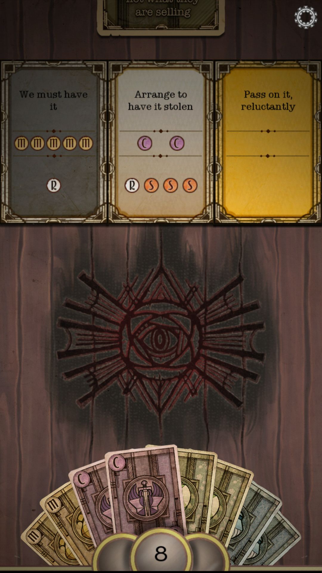 为了满足选项的代价,玩家付出资源时,需将对应的资源从手牌中拖拽至中间的“眼睛”图案处。