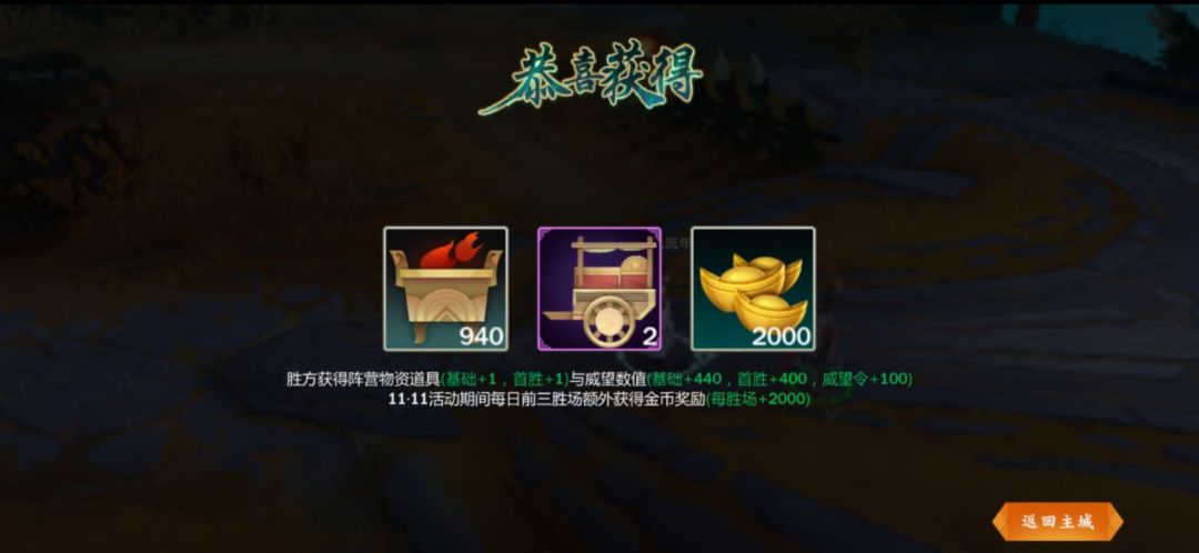 1.战场限时增加大量金币奖励,前三把胜利,每一把可获取2000金币,获得全场最佳更有额外的1000金币,加上之前一次更新的改动,现在前三把战场胜利总共最多可以获得15000金!