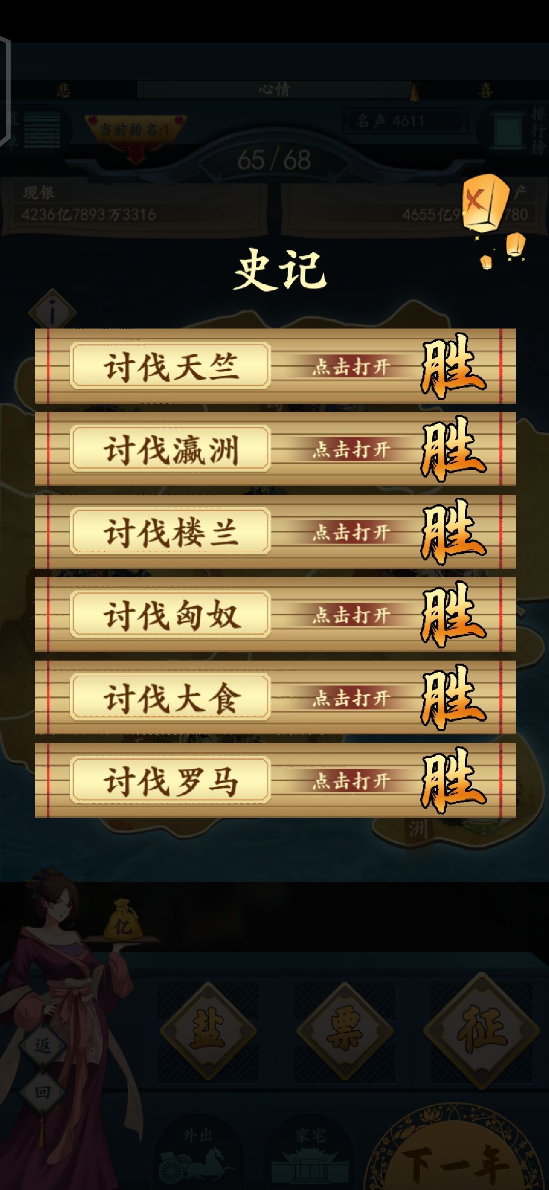 至于这些个宴客,看情况去游说也不是都都需要的,有些用处不大的,游说4~5阶段的宴客的时候最好把那个琴师在诗会里面,先回答一下把她给弄出来做个三花如果它的属性刚好和你需要的知己,属性冲突可以刷新一下,有的宴客游说不到,也不用去刻意的游说,不然就很亏的,就比如小网眼,你把所有盐矿全部打开,开急速,小王爷游说三次,如果还游说不到就不要再游说了。这个看你自己的理解吧。在这儿就不多说了。