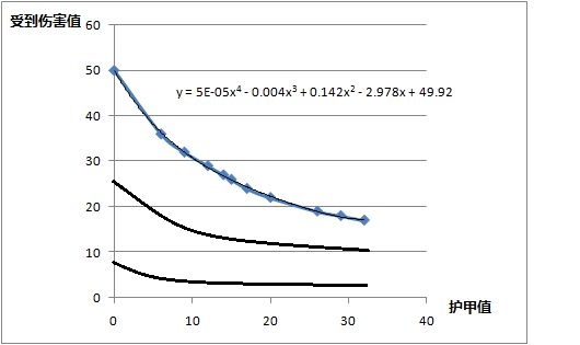 那么同理推测,其他怪物的伤害—护甲曲线应该是这样的
