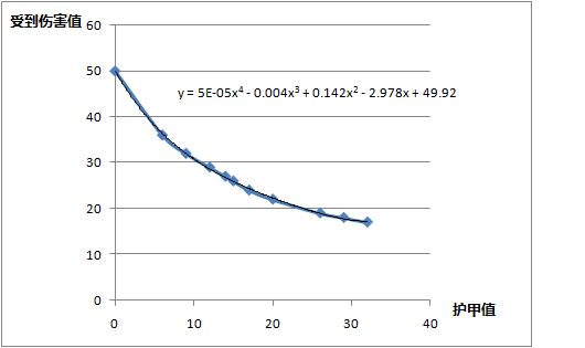 首先,第一点要说明的地方:受到伤害和护甲并不是固定比例换算的,没有护甲+多少,伤害-多少这样的固定关系,它是一个凹曲线函数。