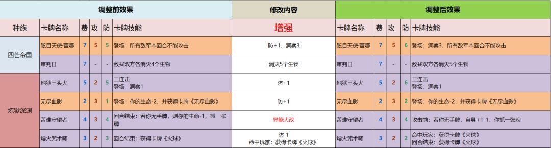 注:本次取消了炎阳巨龙、深渊印记、使徒印记的平衡性调整