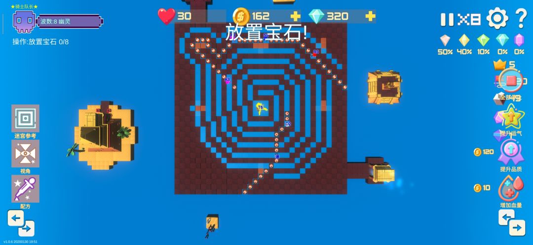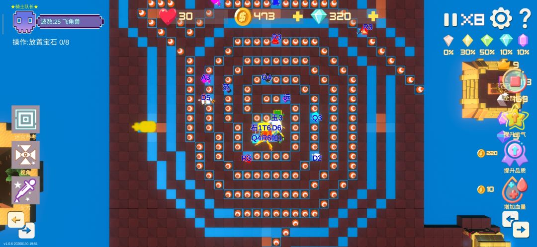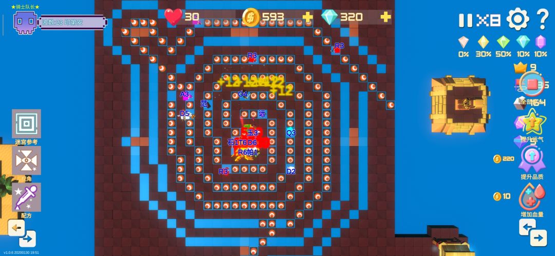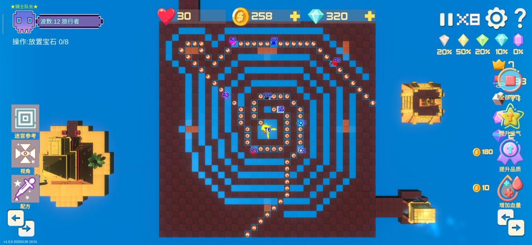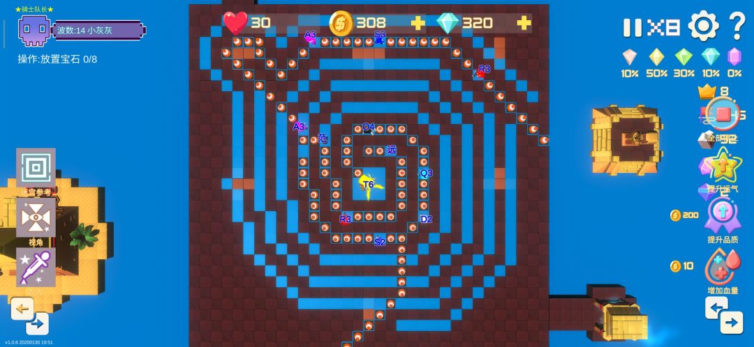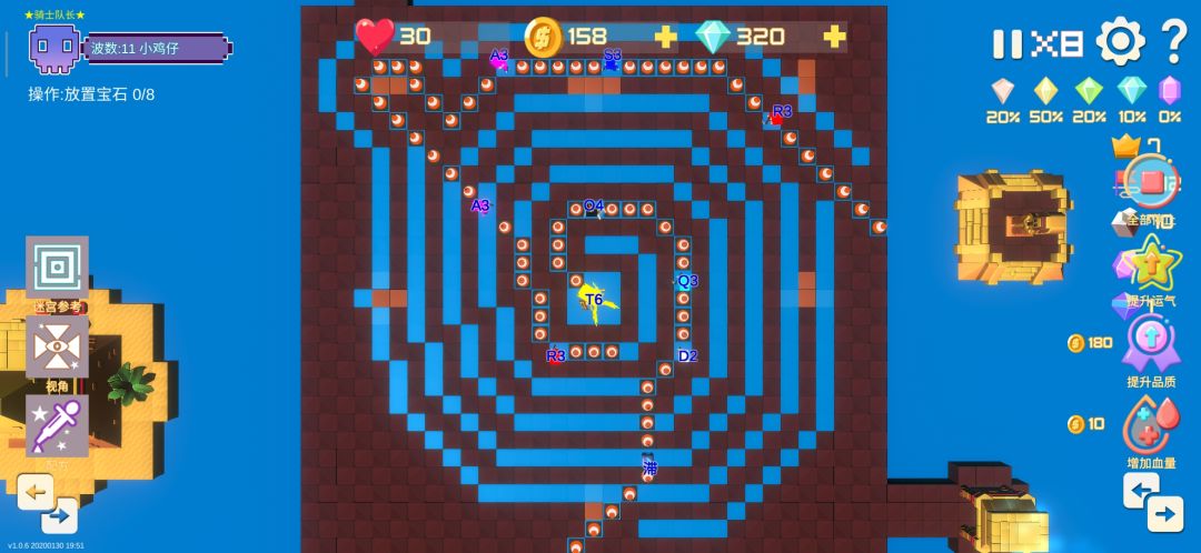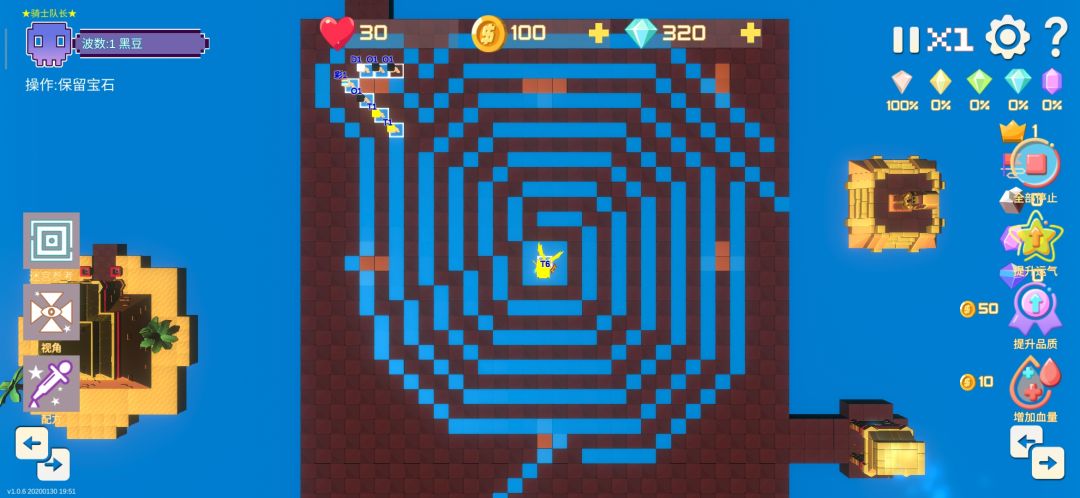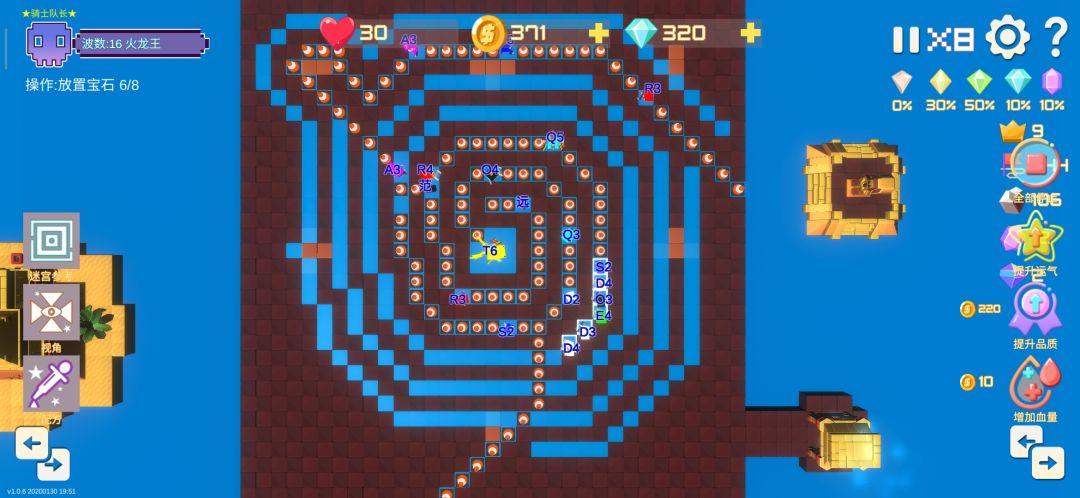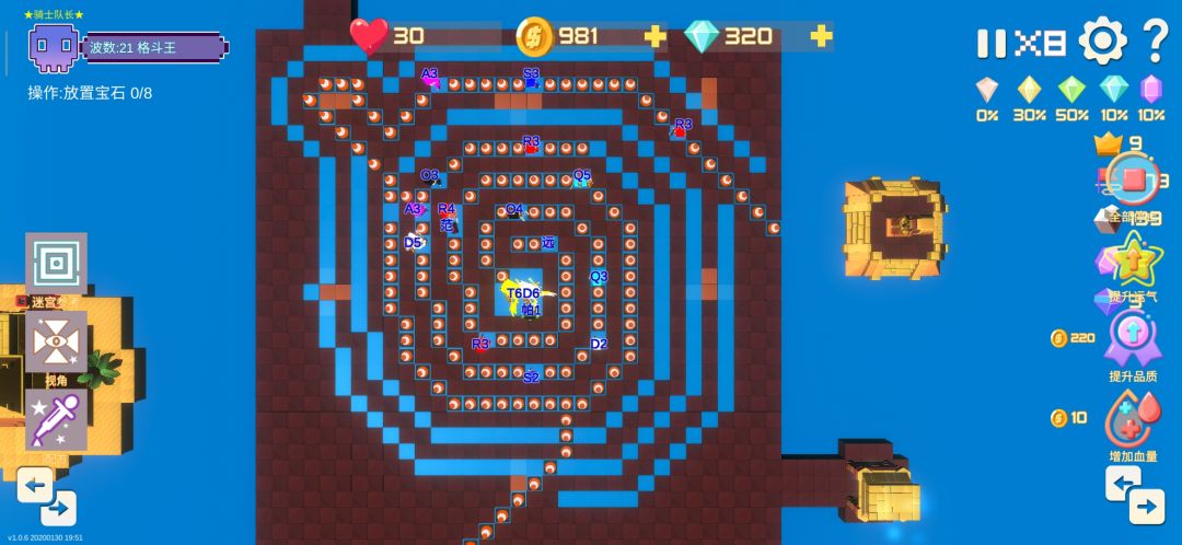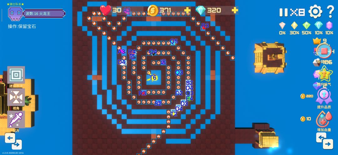出了T6后前面十几关只管做迷宫,金币只要有就升级右边的提升品质,先升到9级,最后一级40波以后再升(9级品质出5级宝石跟10级一样,但出2级3级宝石概率高一些)