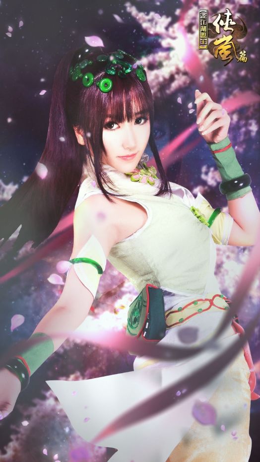 由知名COSer“罐儿”(曾受邀前往圣地亚哥漫展的艺术家展区,平面作品也曾入选盖蒂图片社和国内多家知名媒体的游戏区首页),携手必果互娱拍摄的官方“辰月COSplay”中,一身荷花样式的浅绿色装扮,黑色齐刘海,绑着马尾,清秀的面庞,佩戴碧玉手镯和头饰,将辰月形象完美还原。灵动、出尘,宛如玉蝴蝶一般的碧玉少女,给玩家展现一个别样的侠岚。