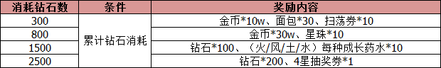 活动内容:活动期间,累计消耗钻石达到指定数量,即可在活动结束后获得丰富的刚需资源或道具。
