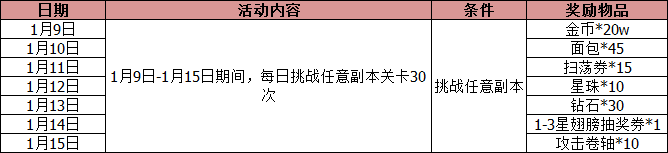 活动内容:活动期间,完成单日活动要求的副本挑战次数,即可在次日获得丰富奖励!