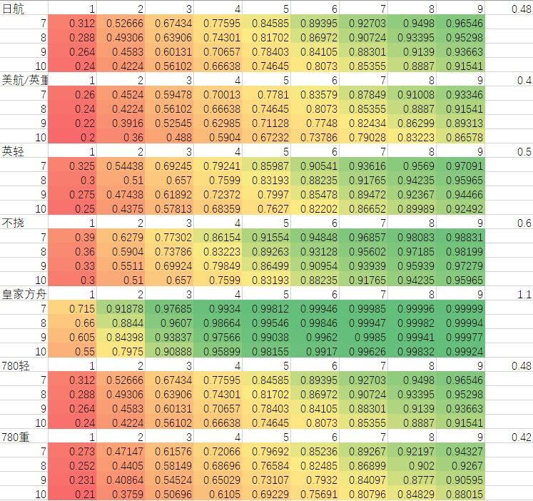我们曾经一度认为半伤比例中涉及的1/6代表0.165。但经过反复测试,我们发现这个数字与舰船相关,具体数字如下: