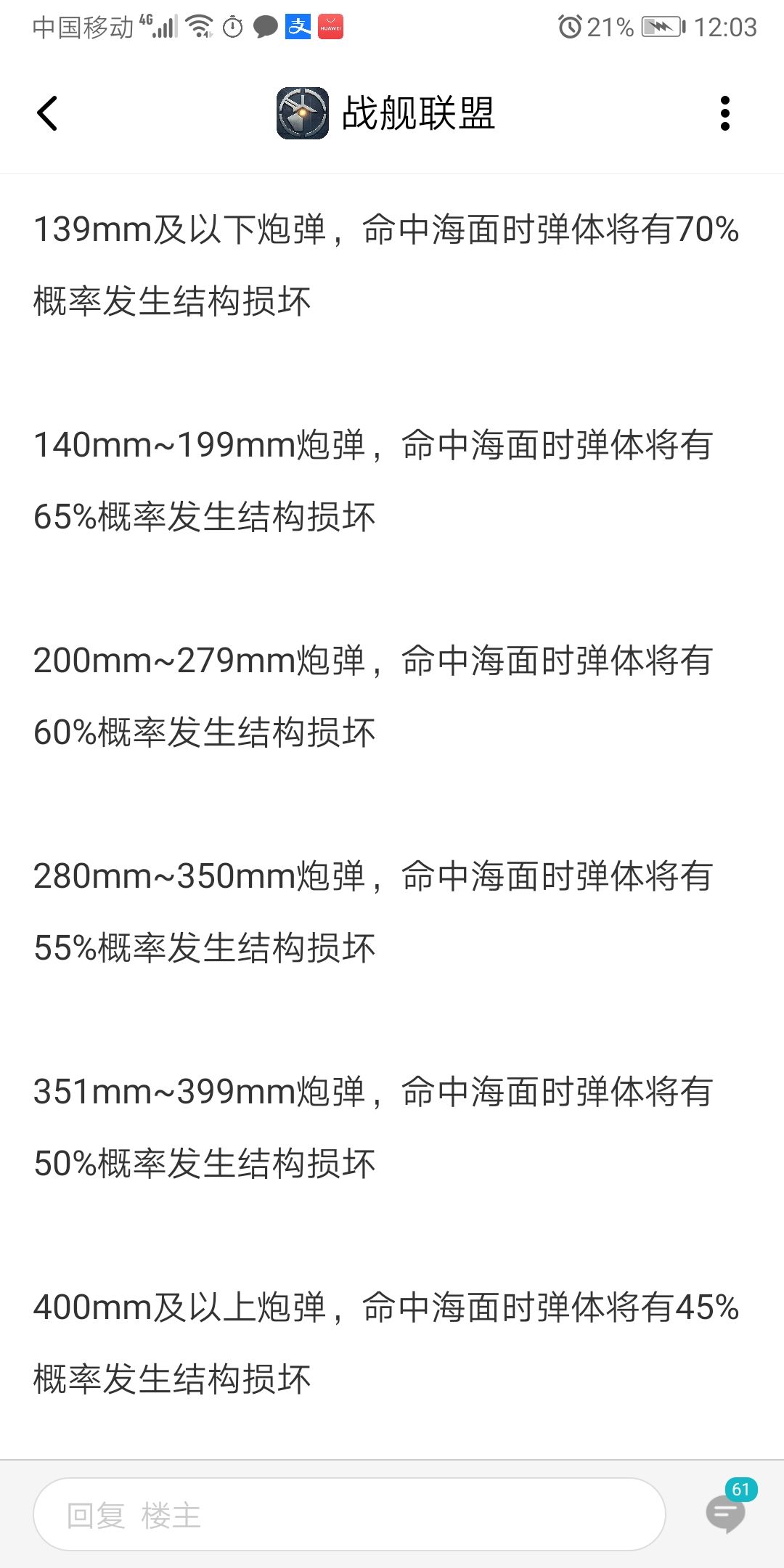 【附1】 ( 目前战舰世界碾压数字是炮弹口径>装甲x14.3即为碾压,战舰联盟为口径≈装甲x15,其中15称为碾压系数,是配好的一个数字,具体能否碾压判定条件为触发引信所需装甲总厚度的比例乘0.4,即口径1/6(进行取整)*0.4)