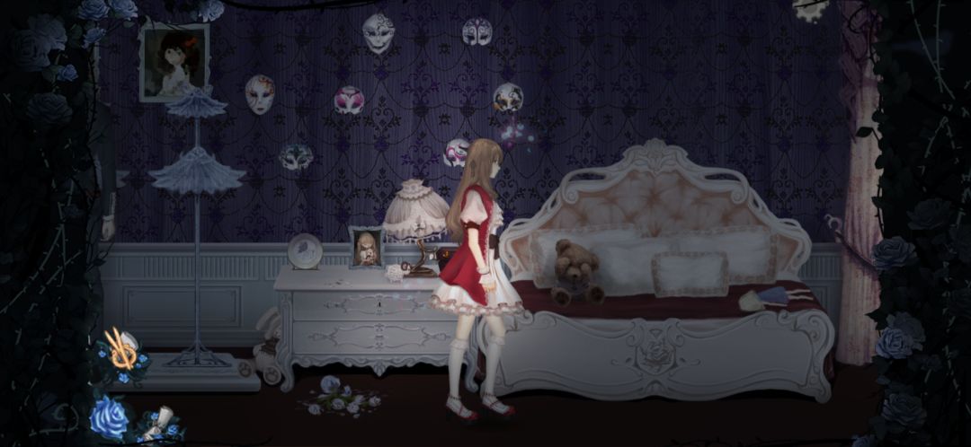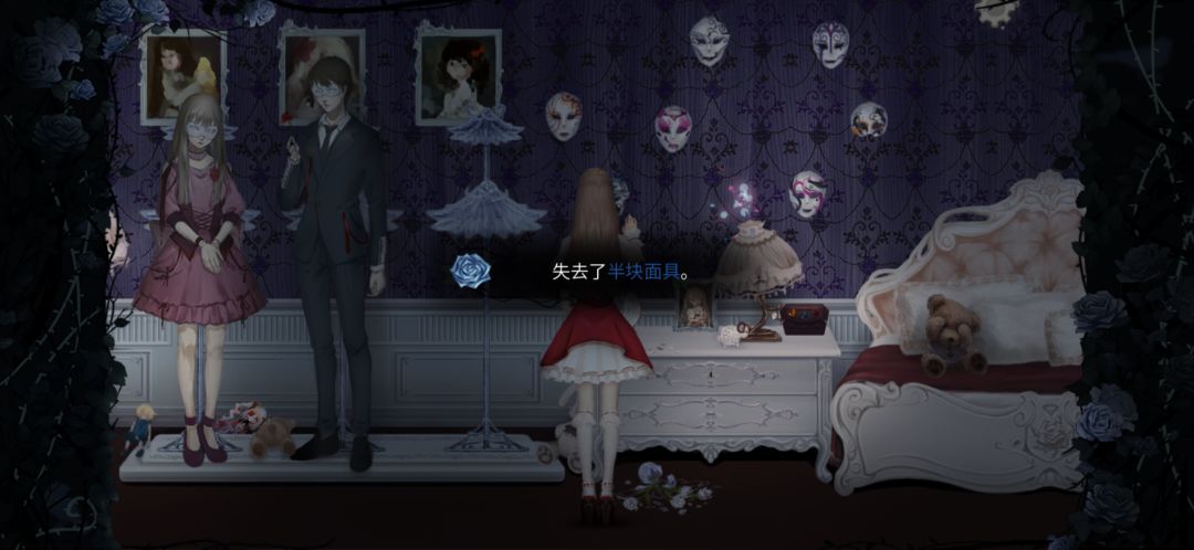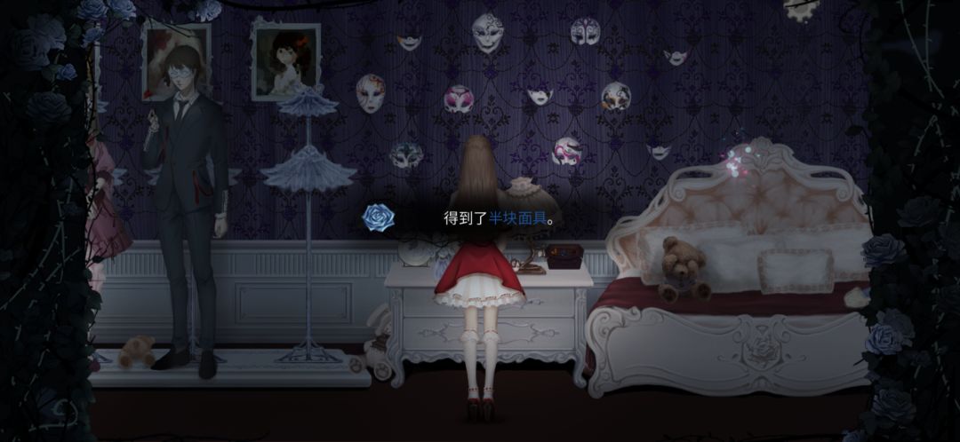 玩偶消失之后,去衣柜底下或者人偶架子下面找到捉迷藏的玩偶,触发对话,给她缝制的玫瑰裙,得到衣柜钥匙。