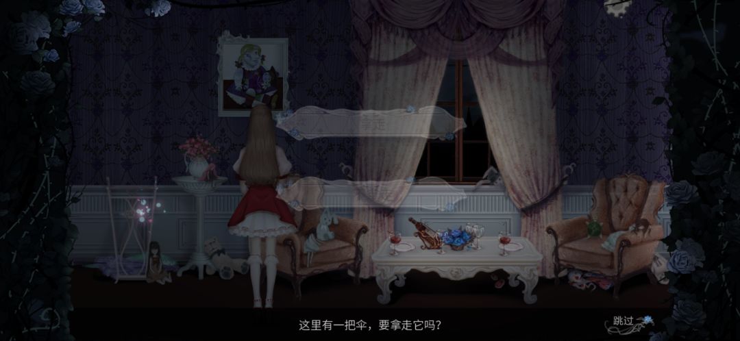 拉起衣柜边的窗帘会找到蓝色雨伞以及下一关书房的重点道具小水桶(重点)