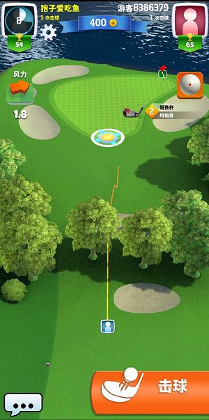 正常情况下,从发球区到球洞会经过球道—果岭边缘——果岭,有时候甚至可以直接从球道击上果岭,再推杆进洞。平稳地形击球时,瞄准盘指针摆动速度正常,玩家只需考虑将球完美击向理想落球点。