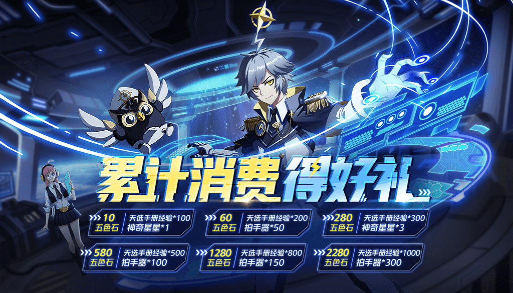 累计消费 280五色石 天选手册经验*300和神奇星星*3