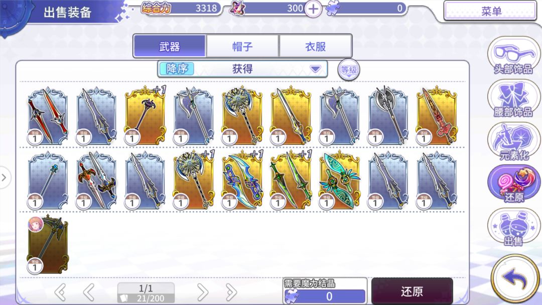 1、目前仅扭蛋(点数扭蛋除外)获得的★2及以上装备可还原为【糖果】道具,还原时需消耗对应的魔力结晶,不同星级的装备还原后会获得不同的【糖果】;
