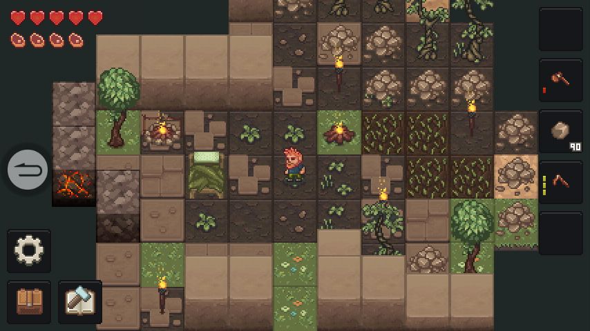 我刚玩时完全是被操作气得要死啊,为嘛不设置个摇杆按键啥的,前期很难后期挺容易玩,特别是你种的植物越来越多后,第一天找椰子树撸树做床吧,不然你别想熬过黑夜,睡觉会变得饥饿,所以必须要准备食物不然会扣血