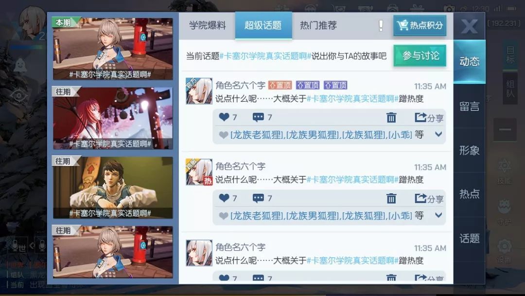 在全新功能中,开放了超级话题、热点推荐、学院爆料,让社交更加自由~∩( ・ω・)∩