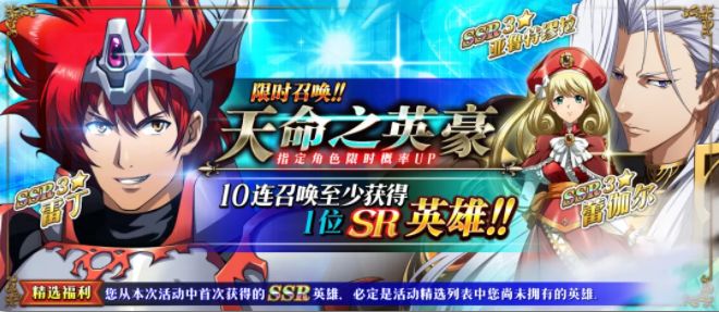 精选福利:你从本次活动中首次抽取到的SSR英雄,必定是活动精选列表中你尚未拥有的SSR英雄。
