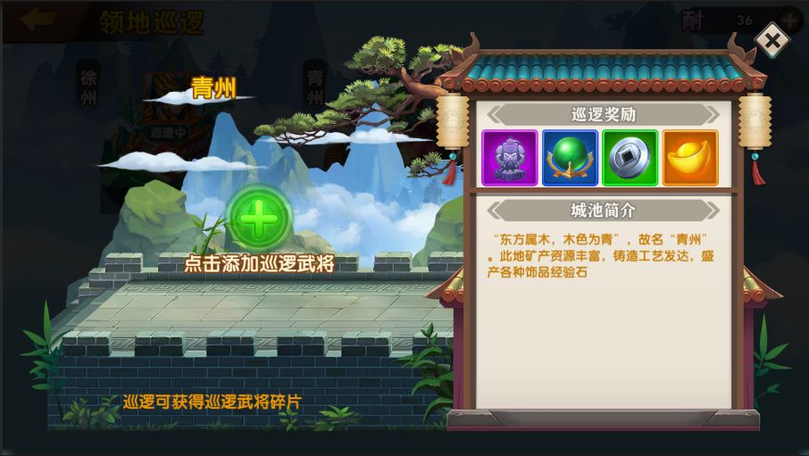 1.每座城池有不同特产,巡逻过程中有机会获得若干数量的特产奖励。