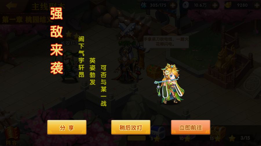 玩家等级达到40级即可开启南蛮入侵系统。玩家每次挑战主线关卡时,都有概率触发南蛮入侵,击退入侵的南蛮可以获得大量的功勋奖励哟~
