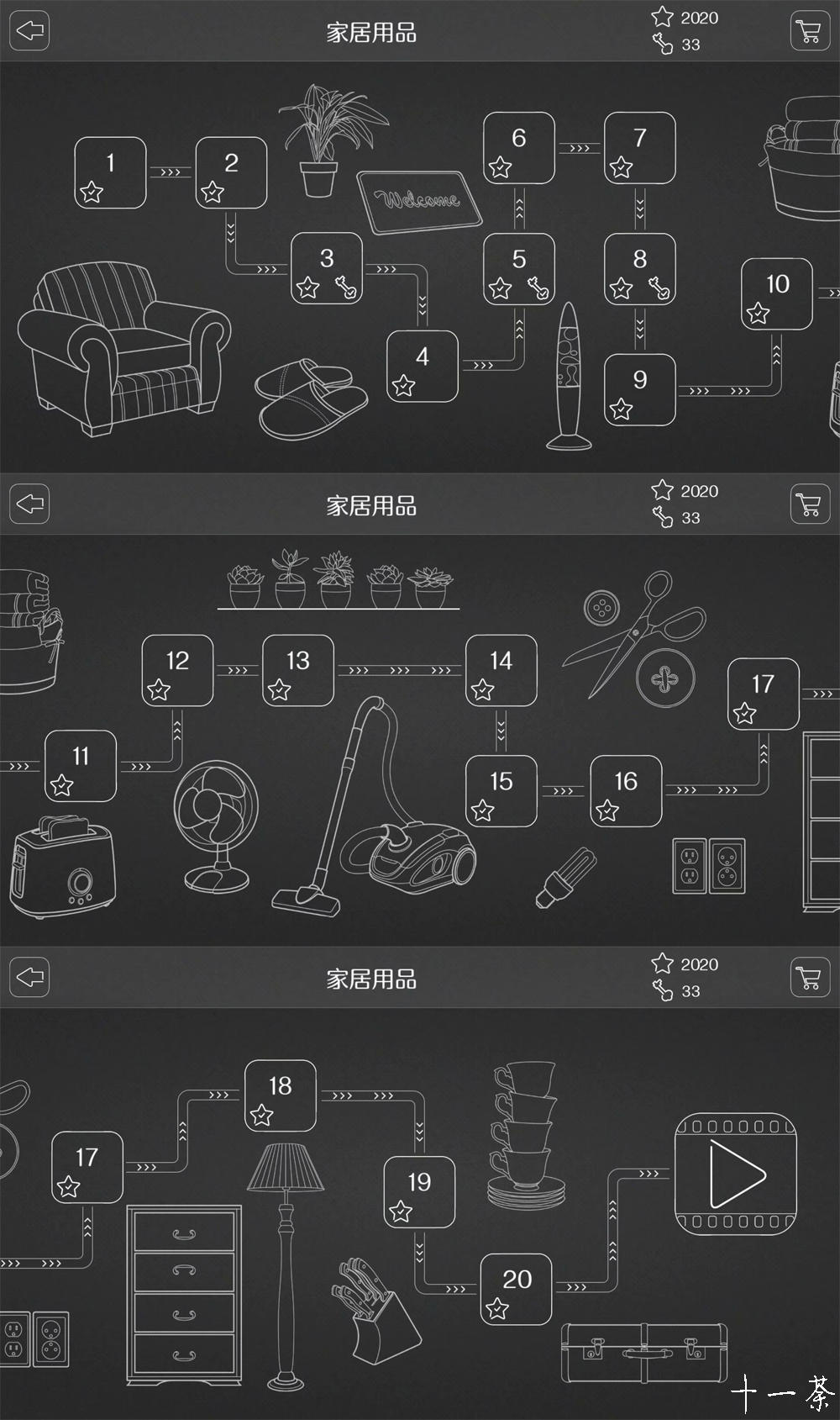 游戏中会有隐藏的星星和钥匙需要我们自己去发现,每一个主题都有十几二十关不等数量的关卡。每一关都有星星可以收集,但是钥匙并不是每一关都有的噢。