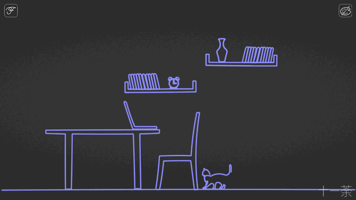 最后的一关是个小故事。用线条拼成一幅幅画面,然后组成一个小动画,讲述一个小故事。