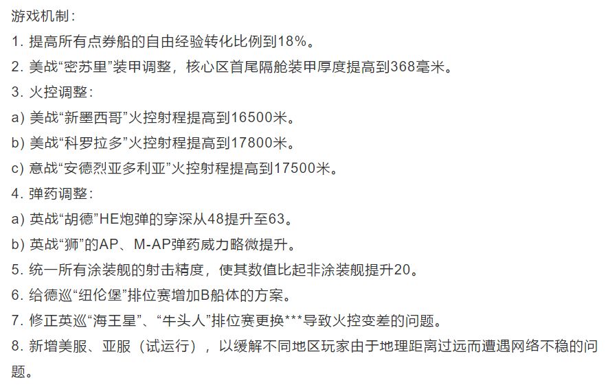 首先回顾今年早期你游的一些更新公告,从《战舰联盟》1月25日维护更新公告中摘取部分