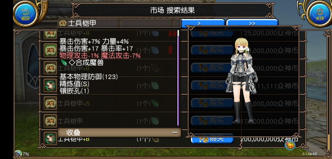 嗯,那这个总没有问题了吧?爆伤啥的都对。你再仔细看看这个负属性。物理攻击减1%,物理职业你去减物攻?说实话这件衣服可惜了,差一丢丢把这个1%物攻炸没了就挺不错。这种是炸魔赌极品的失败品。