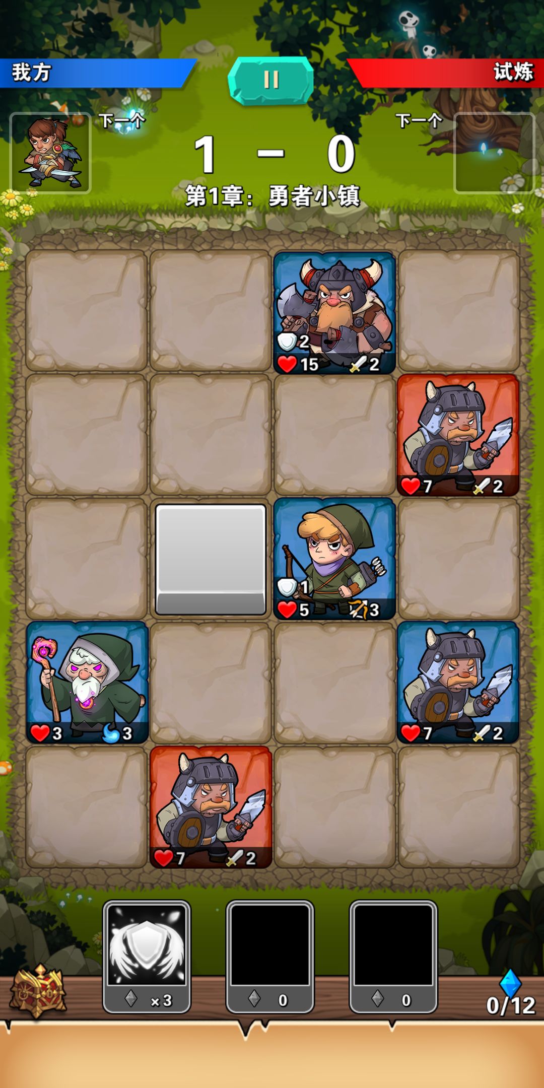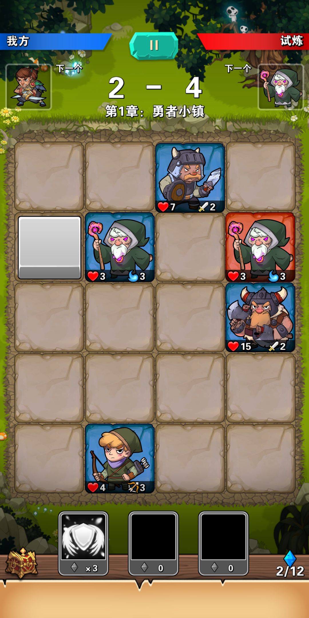 接着,就来到了第二关。这关简直不要太容易,3点攻击力的我方法师正好在3点血量的敌方法师左侧,直接右滑送他归西。接着第二名法师上场,正好卡在了我方法师的右边,受限于场地的限制,只好上滑腾出空间后,左滑收掉。然后是第三、第四名和第五名法师。感谢系统爸爸的眷顾,这一关全部无伤通过。完美~