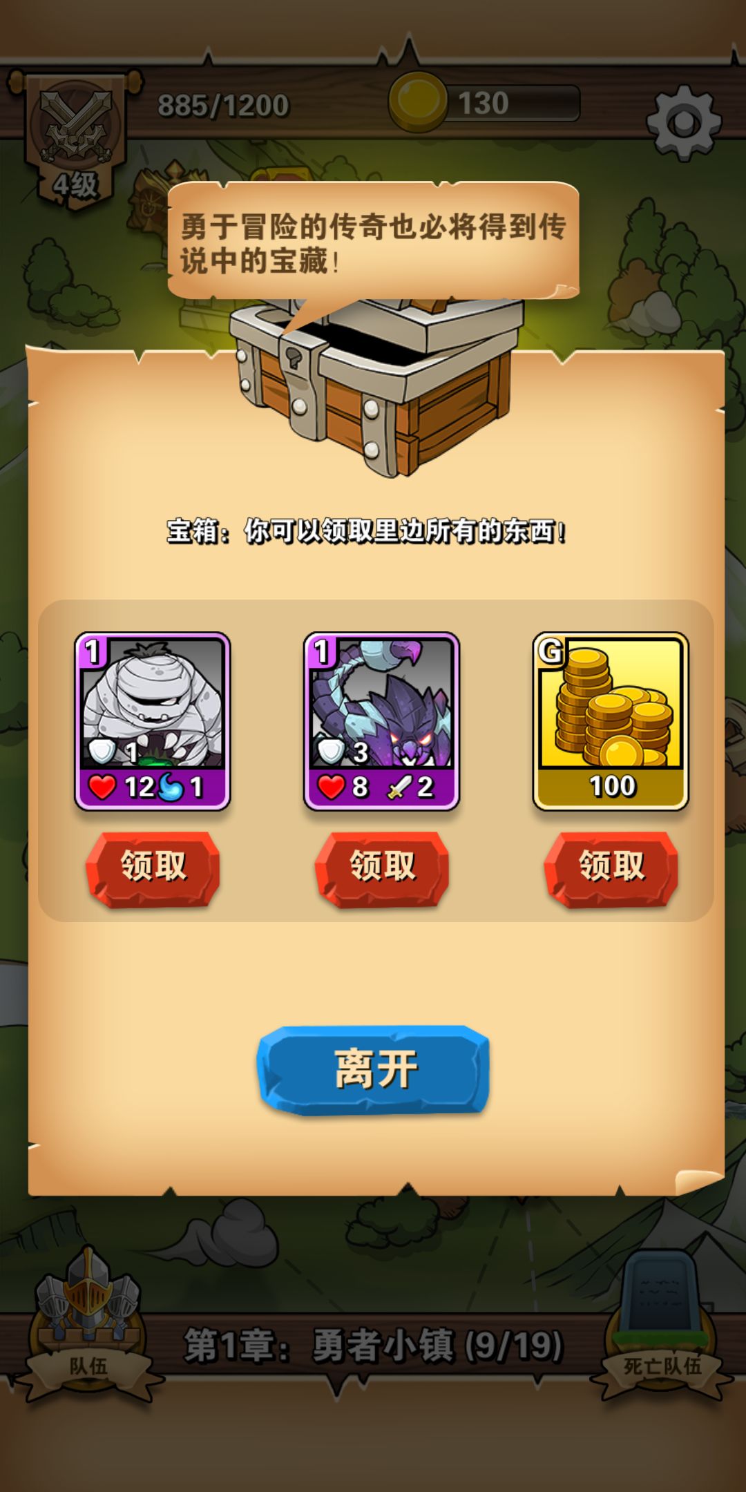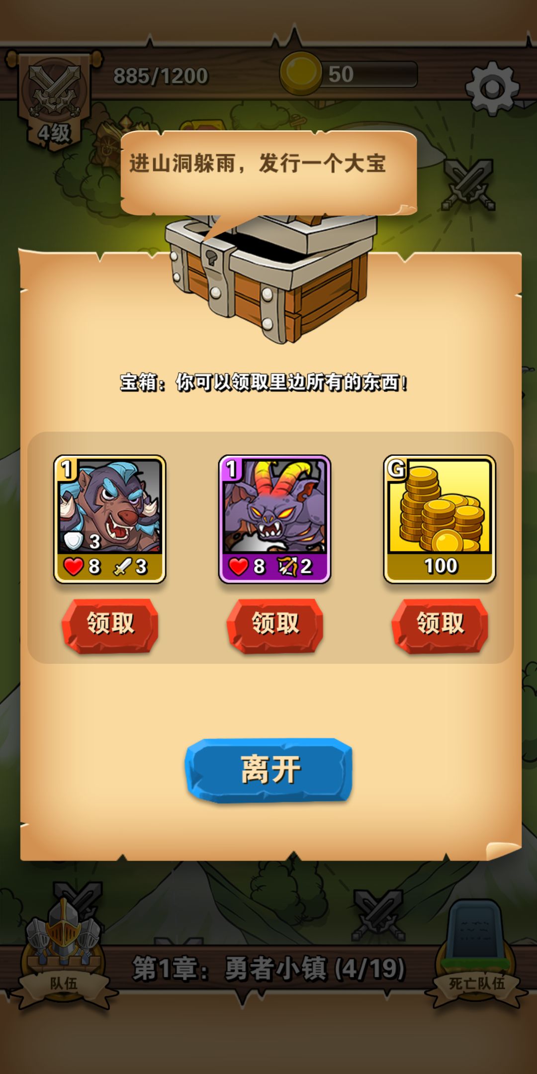 很棒,这次不但收获了契约战士还收获了宝箱关卡里的巨熊、石像鬼及100金币。