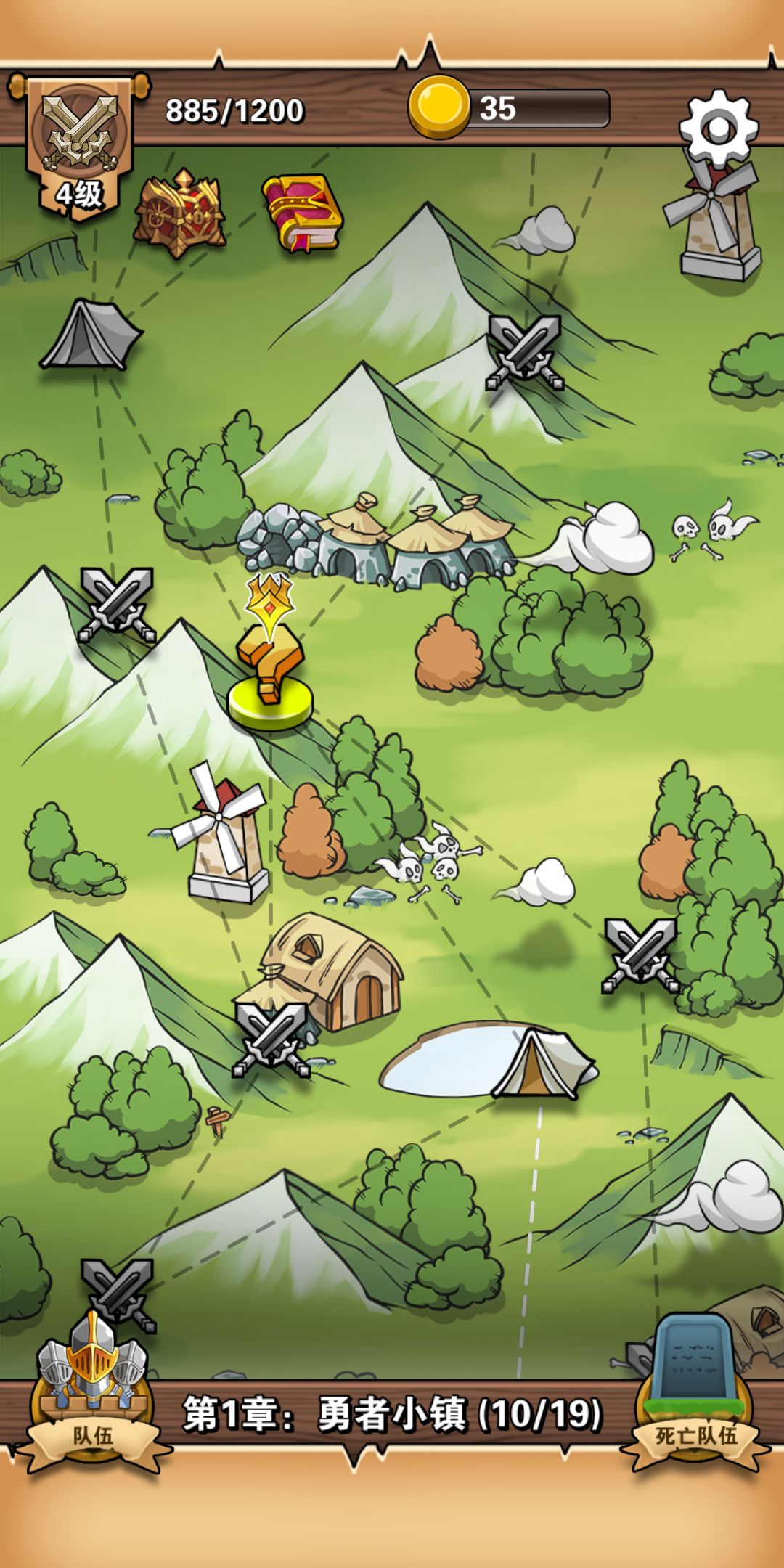 在通过两个关卡付出一些英雄死亡代价后,你没看错,我又来到了帐篷这里。首先要做的就是复活核心英雄,再去升级和招募。