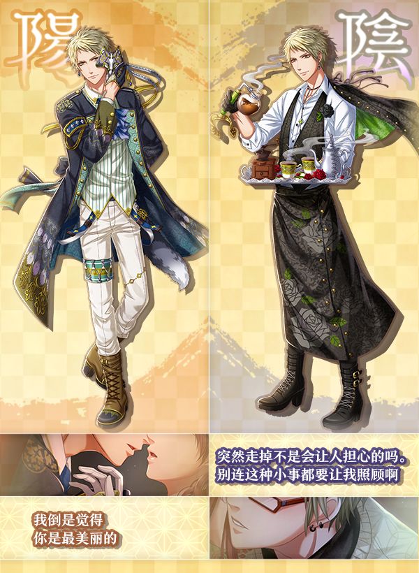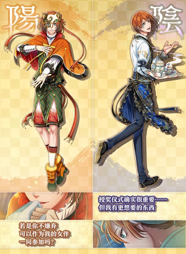 活动说明:11月14日15:00~11月23日12:00期间,可在“商店”→“活动商店”页面购买限定的男子神玉礼包。“居所”界面将神玉赠送给对应男子可解锁live2D形象哦~