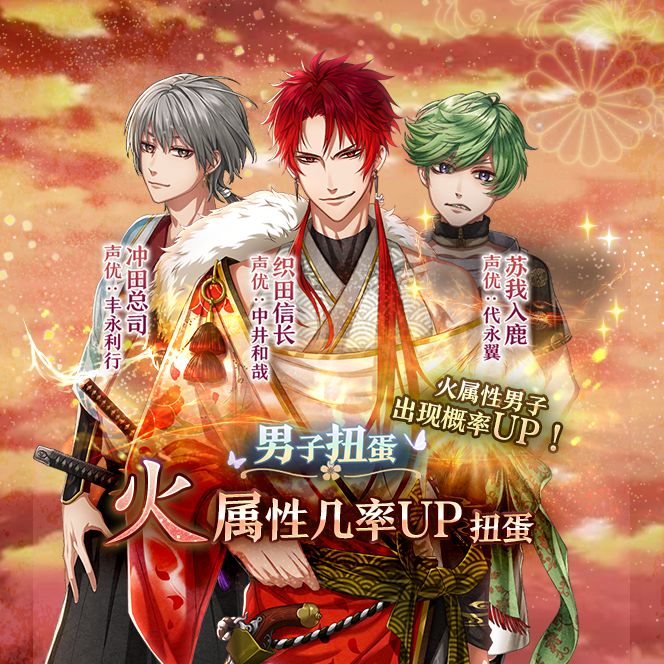 活动说明:活动期间将开启火属性男子概率UP扭蛋和风属性关卡,通关可获得饭团奖励,感兴趣的巫女千万不要错过哦!