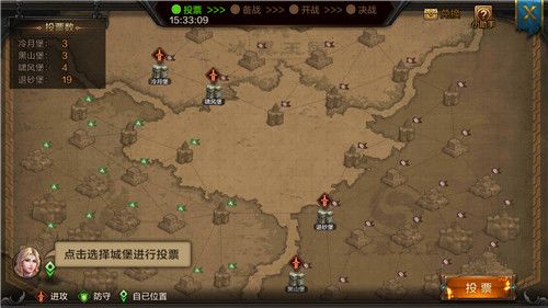 通过本国在世界地图上的纷争,以及联盟之间的恩怨,相信每个联盟都会有想进攻的联盟以及国家,所以在投票的时候,另外两个国家分别存在的两座名城堡垒,总有一个会是领主所在联盟的攻击目标,投票时本国各联盟应一致对外,尽量在国家聊天室里沟通好,避免出现平票情况。其实简而言之,就是需要领主们集体商议想要攻打的国家,最后做出投票决定。