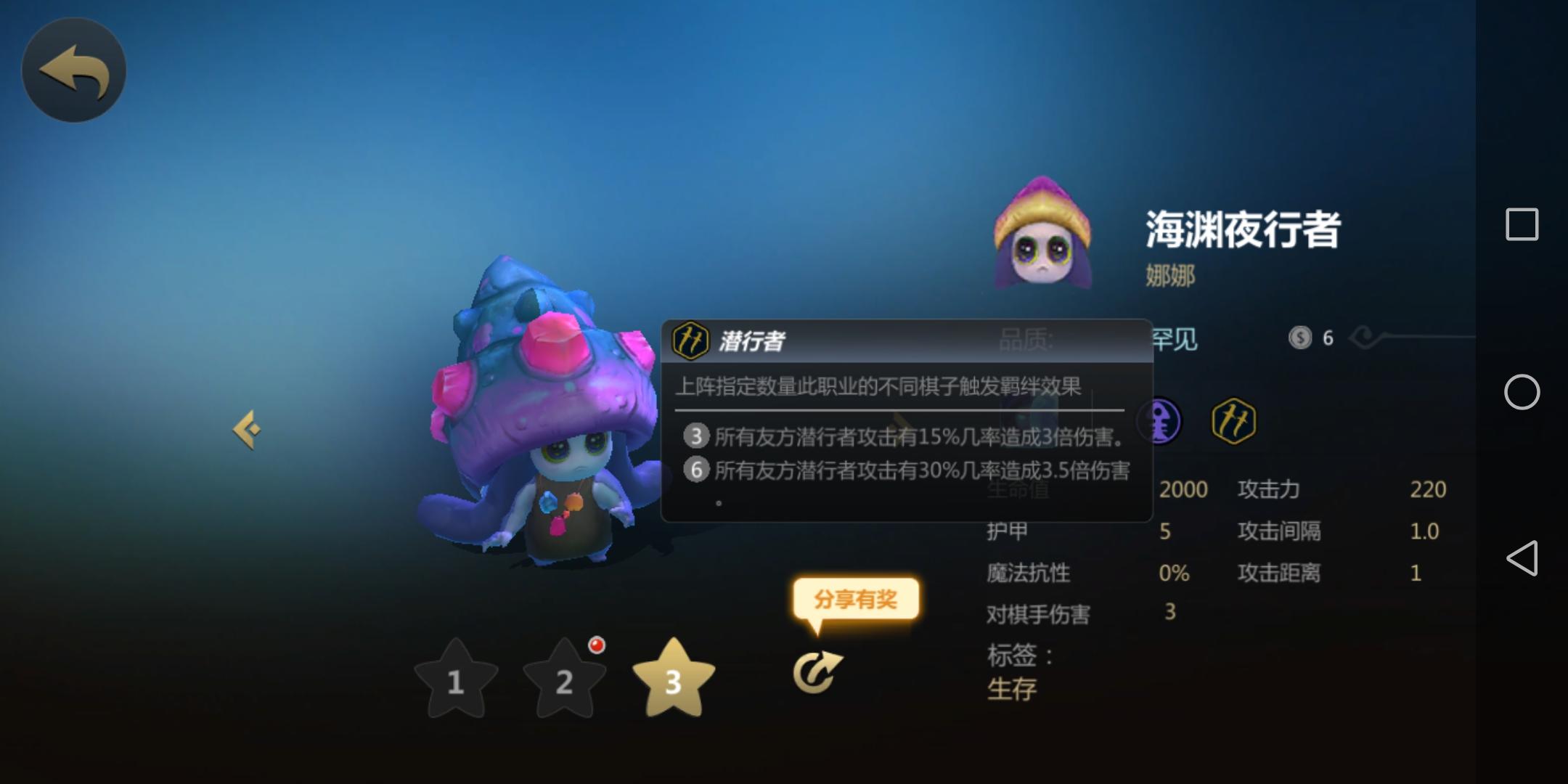 我自己是主教7,不算高不算低。这把阵容是神刺,一个大后期阵容,可以看到我的三星小蘑菇(海渊夜行者)伤害高达20000点,基本上一平A2000以上,要知道三星战神无装是2600血,基本上2A死一个三星。
