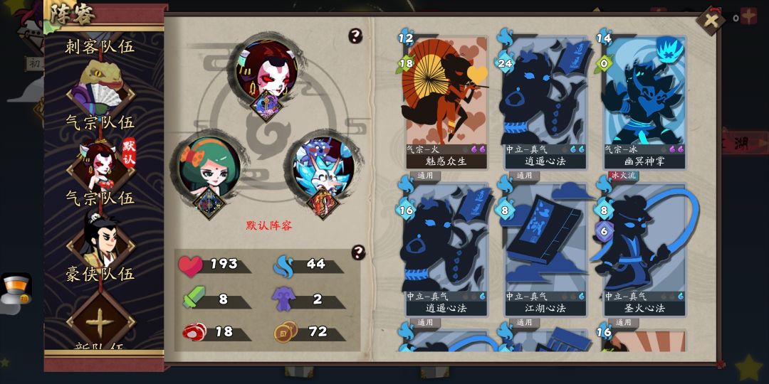 灵儿飞将化形,康夫人带着3个灵儿的绿色化形,三个武侠筋脉都是只点了一级技能和一级天赋提升,把血量提升到了接近200,降低翻车率。