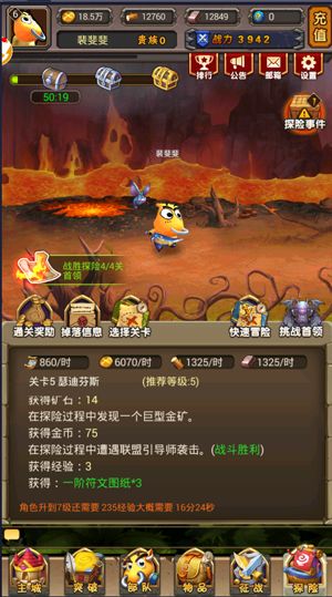选择探险功能,各种信息都可以查看,也可以选择挑战首领,进入战斗界面。