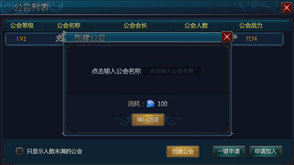 1. 公会系统开放后,玩家可以自己创建公会,创建公会需要消耗一定的钻石,创建人自动是公会会长