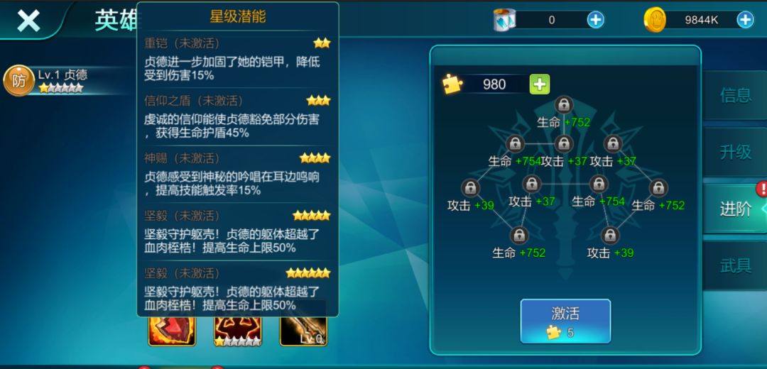 为了保持神秘感,小陆陆就不全发了,新的技能,在战斗中会起到很大的作用,激活技能星级方式就是获得该英雄的碎片从而激活他的专属星级技能。