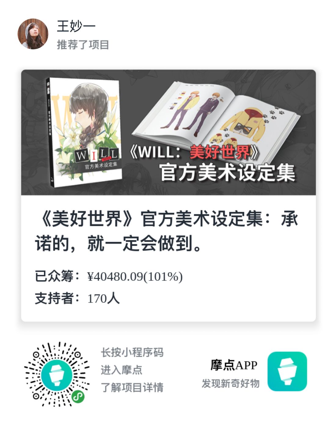 摩点网:《美好世界》官方美术设定集:承诺的,就一定会做到。