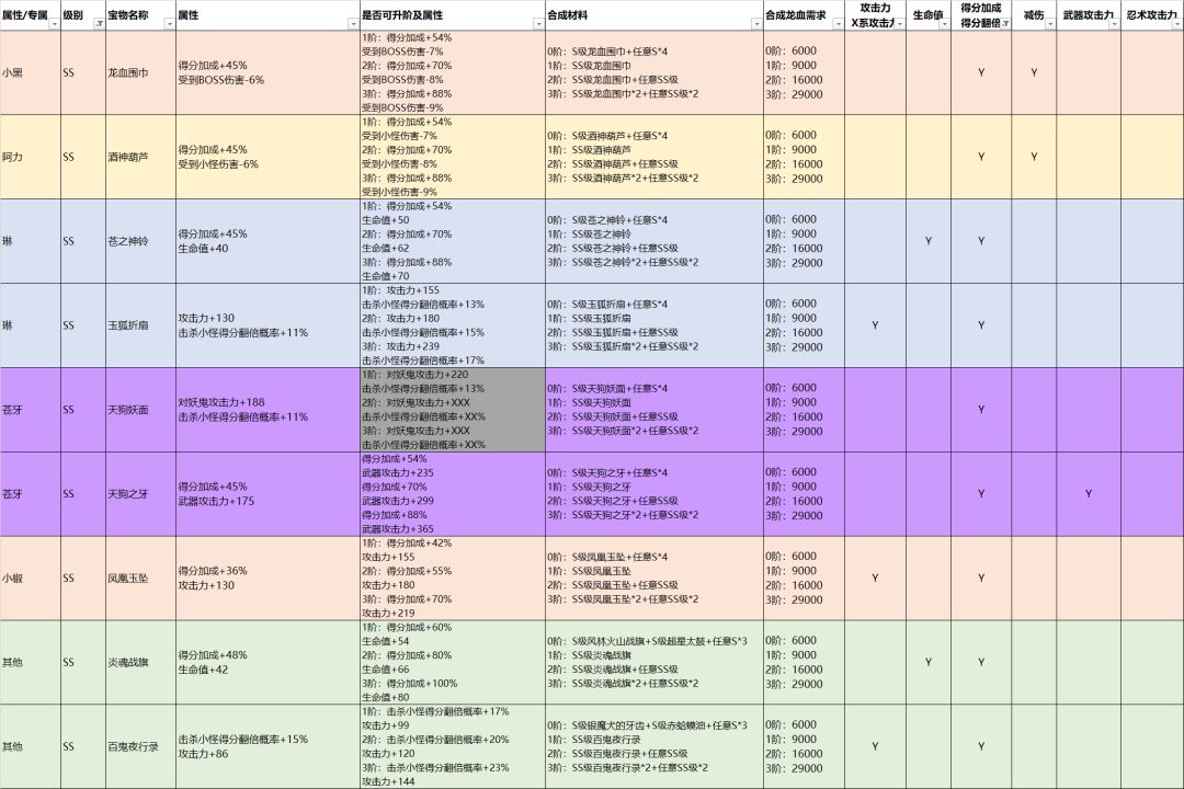 全宝物属性表、图券刷新表、宝物搭配攻略