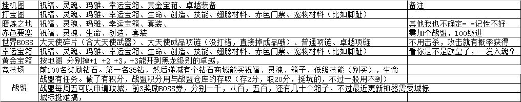 3.经济收入,首先私聊群里有个管理,让他开通一下交易权限,免费的。经济收入主要是:祝福,灵魂,技能书,幸运防10的黑龙级别装备,幸运防10的套装,生命,创造(可以抽取果实,一样值钱),猛兽的脚趾(合狼,目前最厉害宠物),这些都是目前很好卖的,基本打到一个 直接可以买会员了。看下表可能比较清晰: